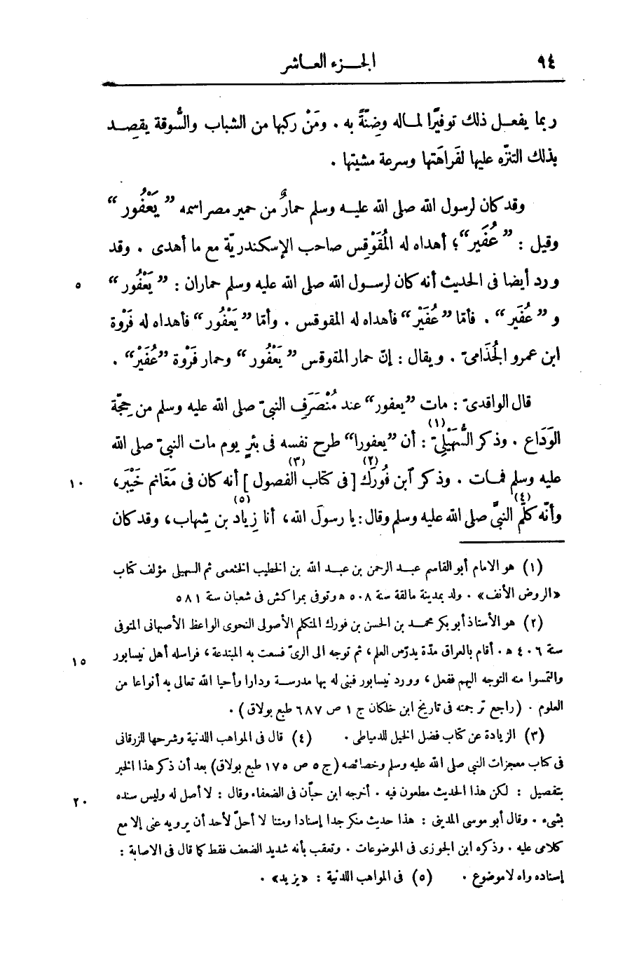 وقد كان لرسول الله صلى الله عليه وسلم حمار من حمير مصر اسمه «يعفور» وقيل: «عفير» ؛ أهداه له المقوقس صاحب الإسكندريّة مع ما أهدى. وقد ورد أيضا فى الحديث أنه كان لرسول الله صلى الله عليه وسلم حماران: «يعفور» و «عفير» . فأمّا «عفير» فأهداه له المقوقس. وأمّا «يعفور» فأهداه له فروة ابن عمرو الجذامىّ. ويقال: إنّ حمار المقوقس «يعفور» وحمار فروة «عفير» .