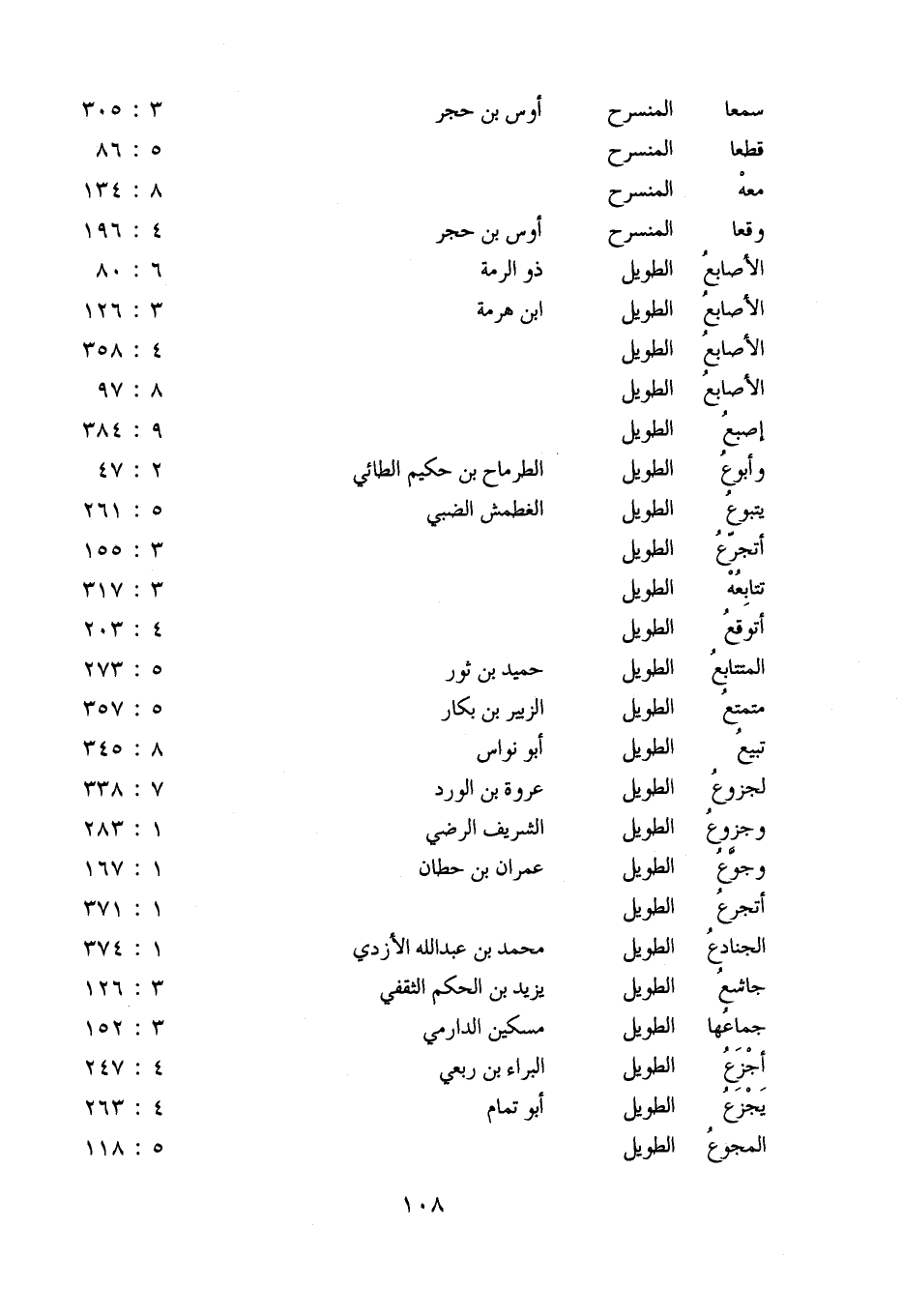 وأبوع: الطويل: الطرماح بن حكيم الطائي: 2: 47