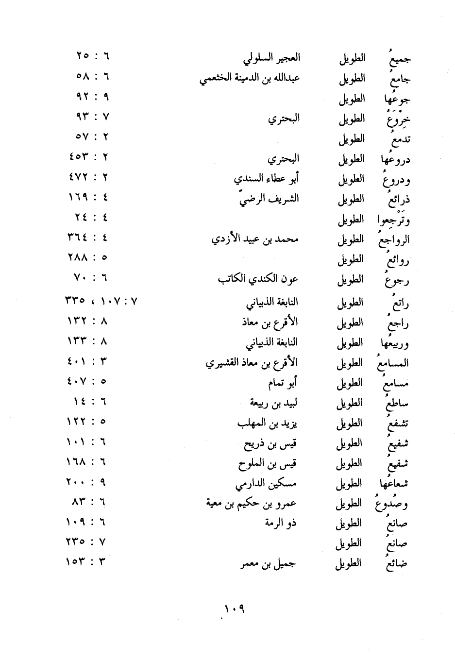 راتع: الطويل: النابغة الذبياني: 7: 107، 335
