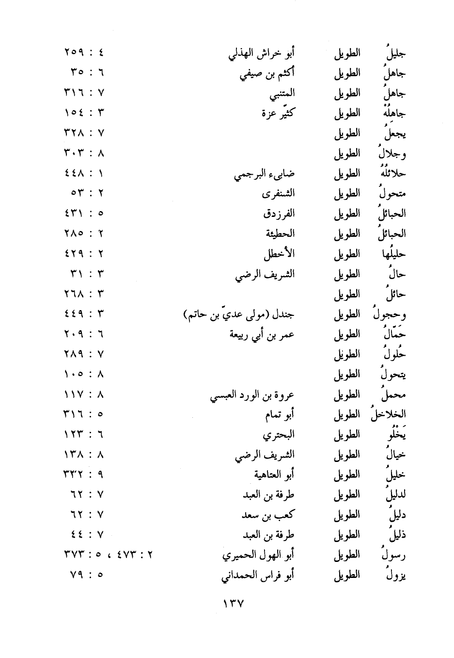 وحجول: الطويل: جندل (مولى عديّ بن حاتم) : 3: 449