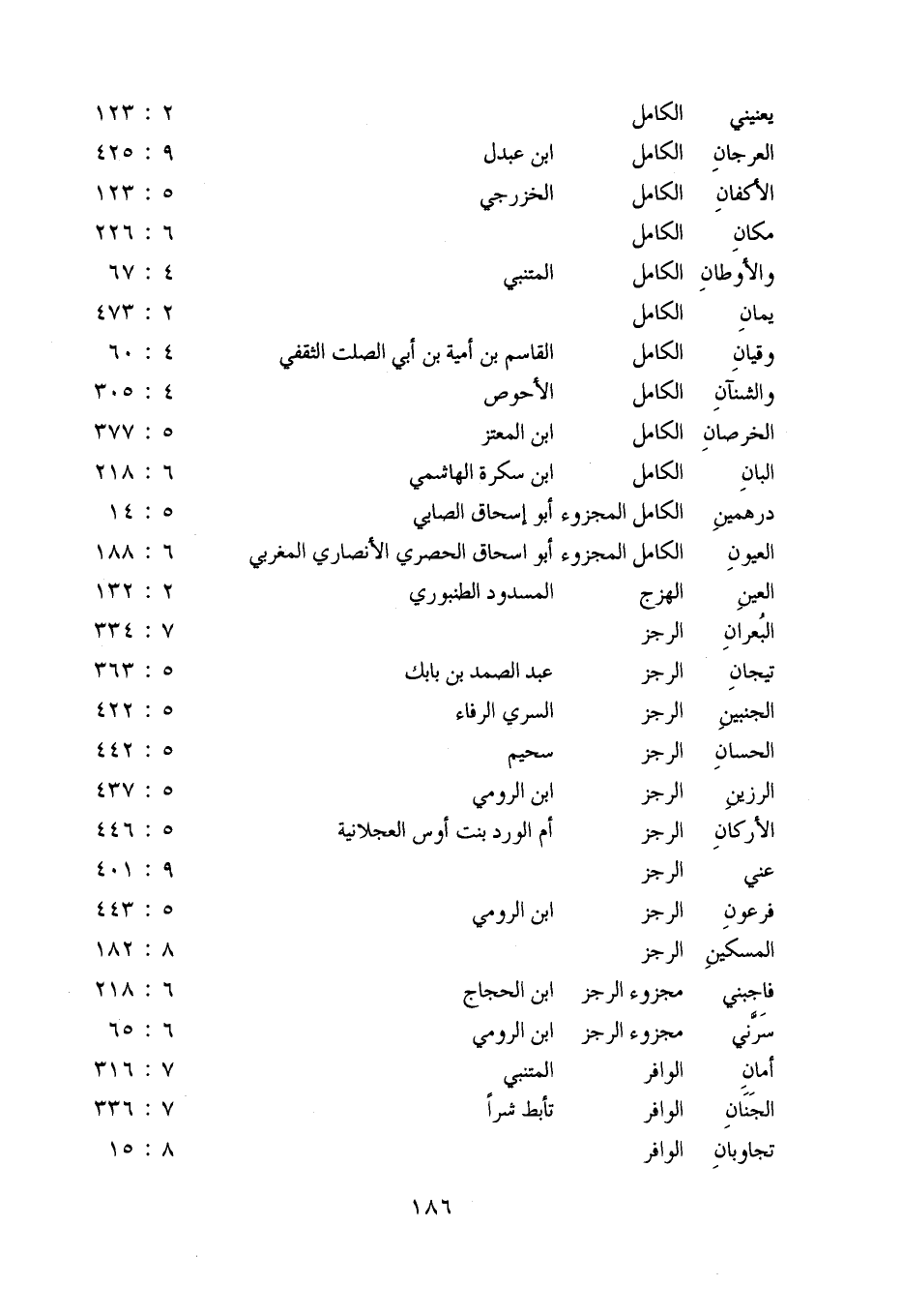 العيون: الكامل المجزوء أبو اسحاق الحصري الأنصاري المغربي: 6: 188