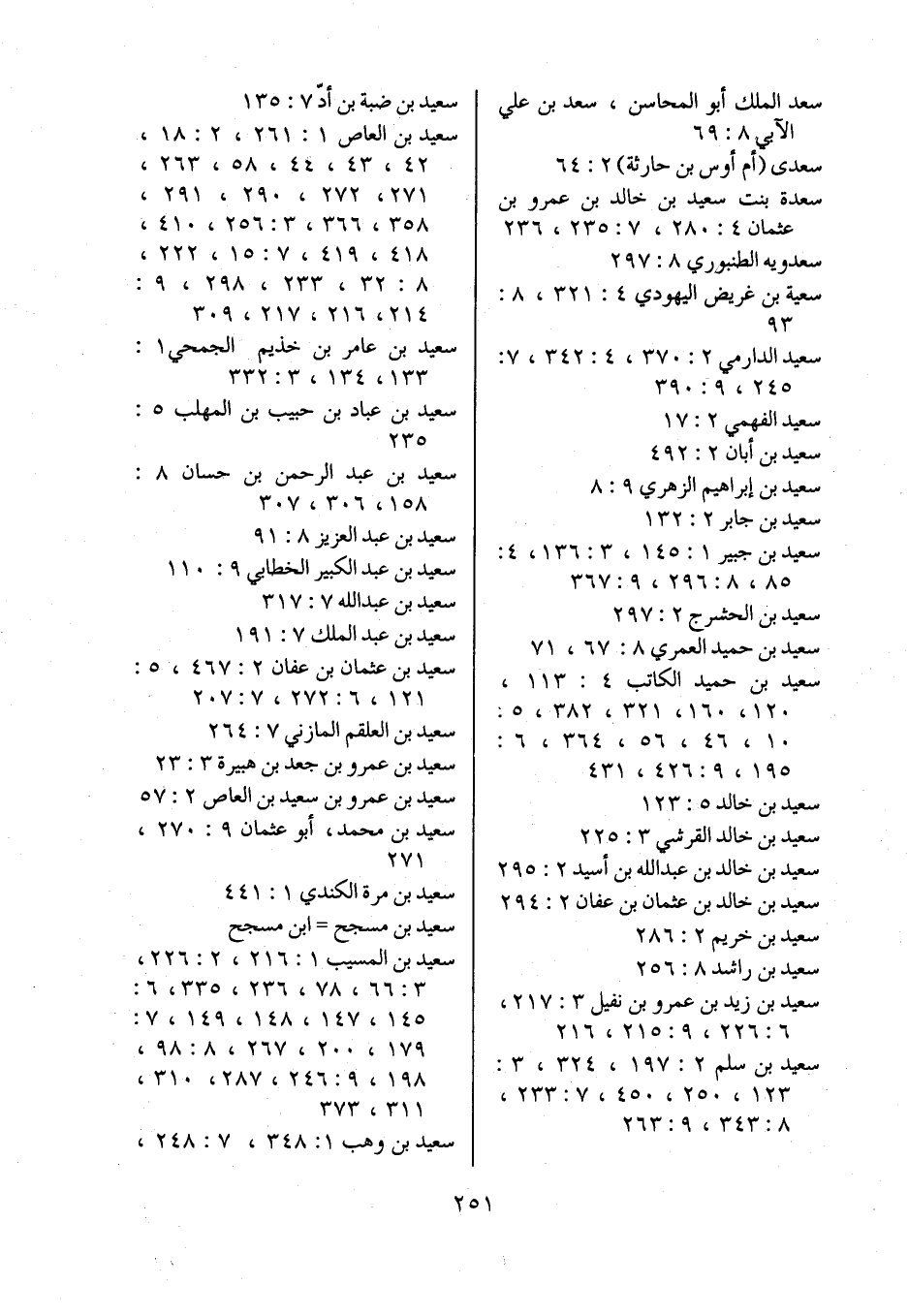 سعيد بن العاص 1: 261، 2: 18، 42، 43، 44، 58، 263، 271، 272، 290، 291، 358، 366، 3: 256، 410، 418، 419، 7: 15، 222، 8: 32، 233، 298، 9: