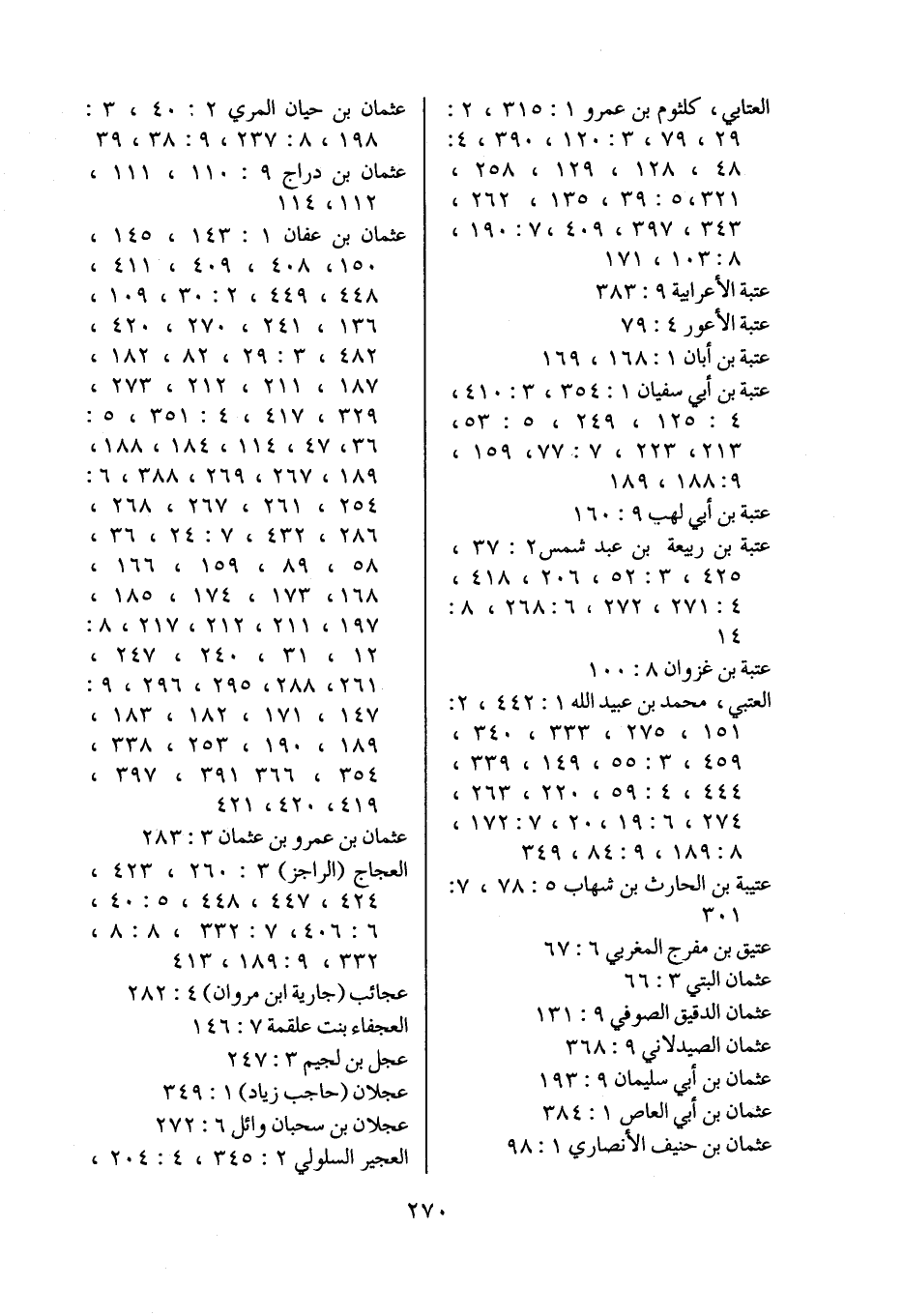 عتبة بن أبي سفيان 1: 354، 3: 410، 4: 125، 249، 5: 53، 213، 223، 7: 77، 159، 9: 188، 189