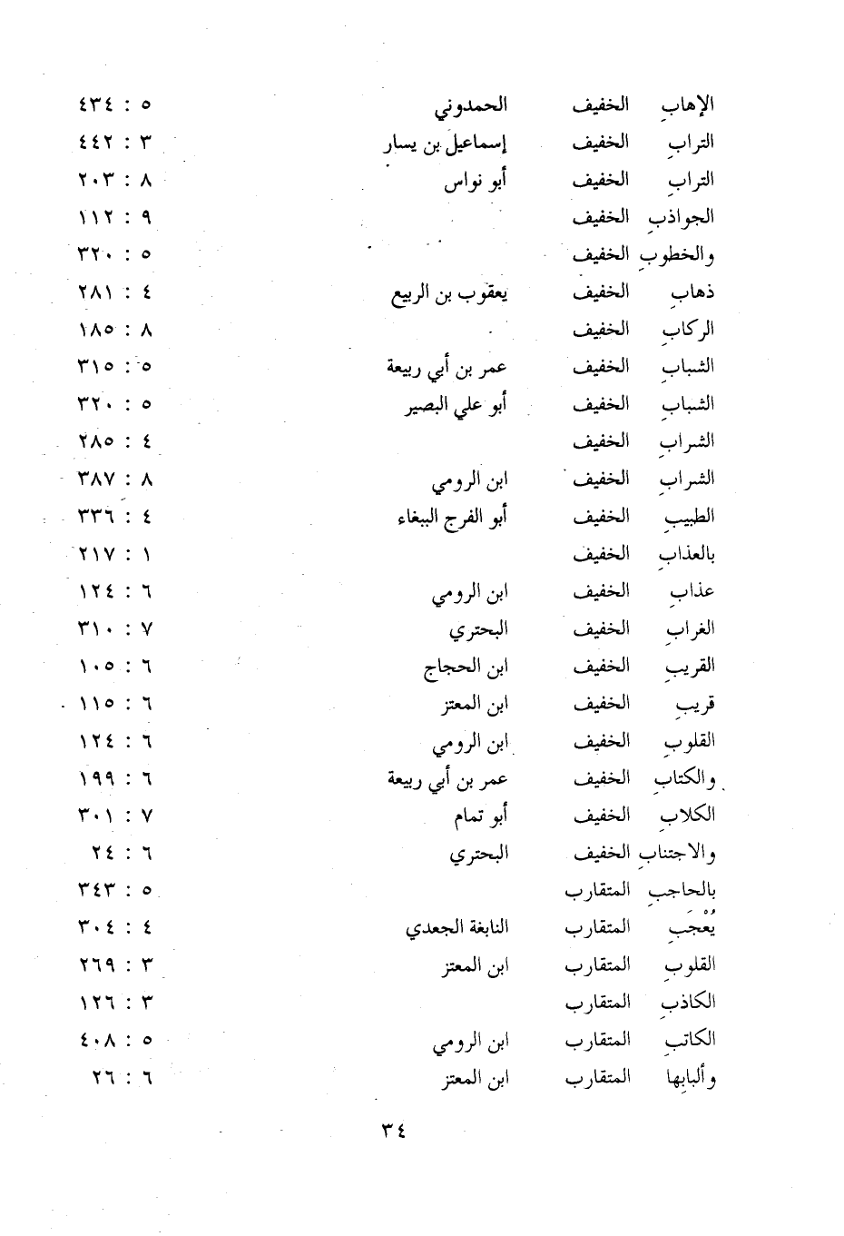 قريب: الخفيف: ابن المعتز: 6: 115