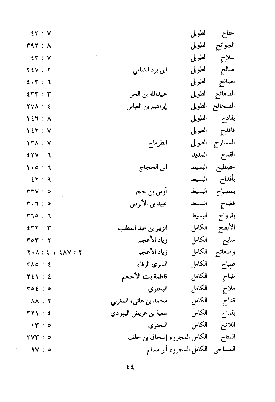 المسارح: الطويل: الطرماح: 7: 138