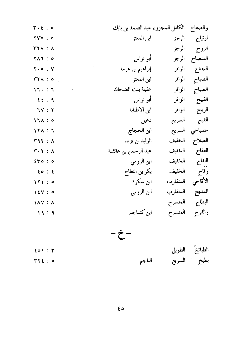 والصفاح: الكامل المجزوء: عبد الصمد بن بابك: 5: 304