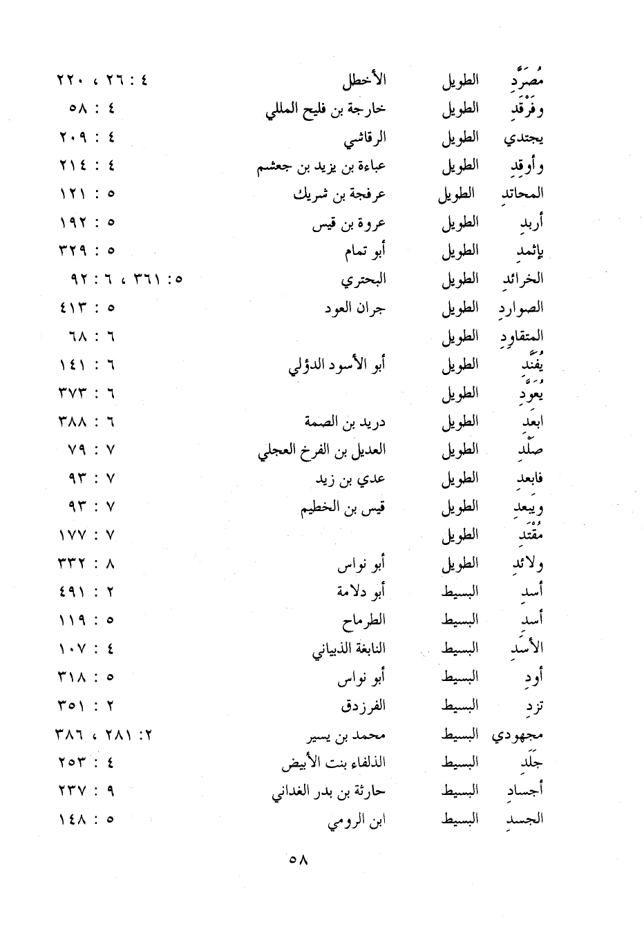 وفرقد: الطويل: خارجة بن فليح المللي: 4: 58