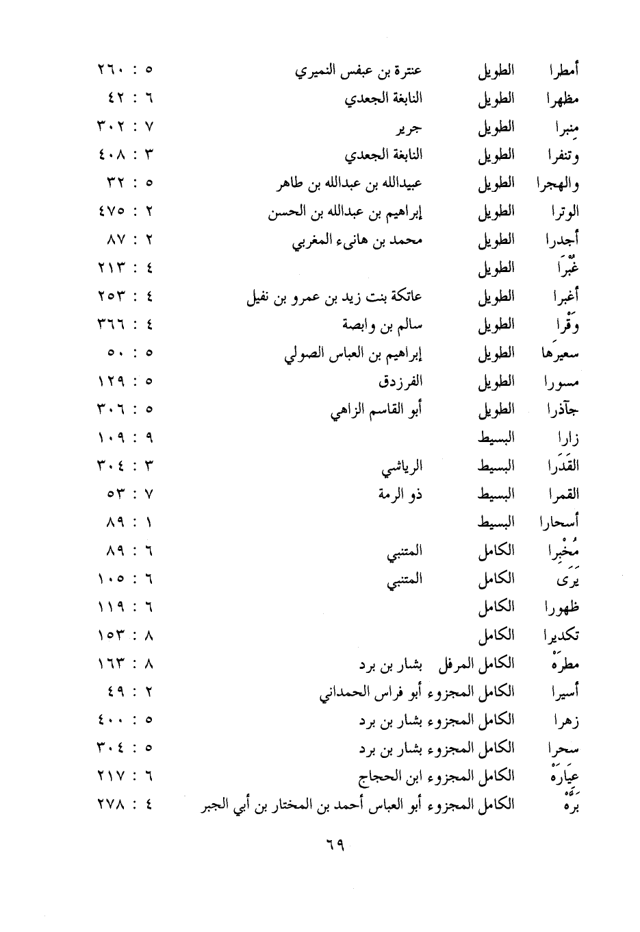 زهرا: الكامل المجزوء بشار بن برد: 5: 400