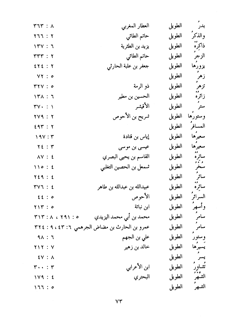 زائره: الطويل: الحسين بن مطير: 6: 138