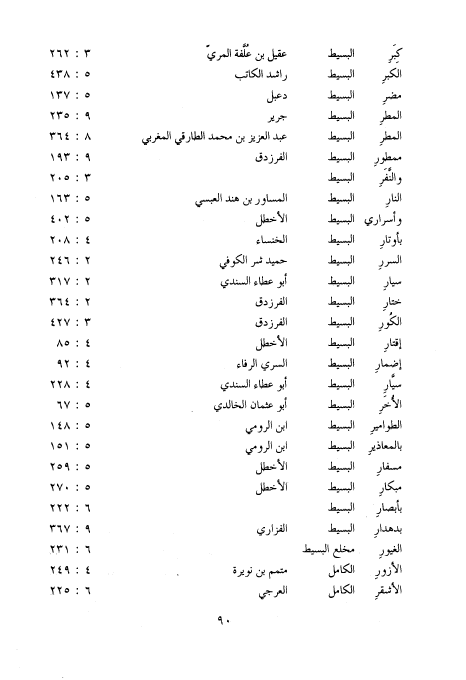 الطوامير: البسيط: ابن الرومي: 5: 148