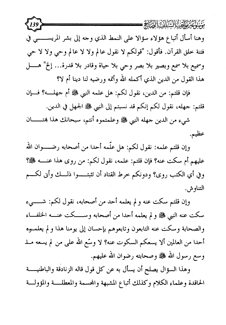 فإن قلتم: من الدين، نقول لكم: هل علمه النبي - صلى الله عليه وسلم - أم جهله؟ فإن قلتم: جهله، نقول لكم إنكم قد نسبتم إلى النبي - صلى الله عليه وسلم - الجهل في الدين.