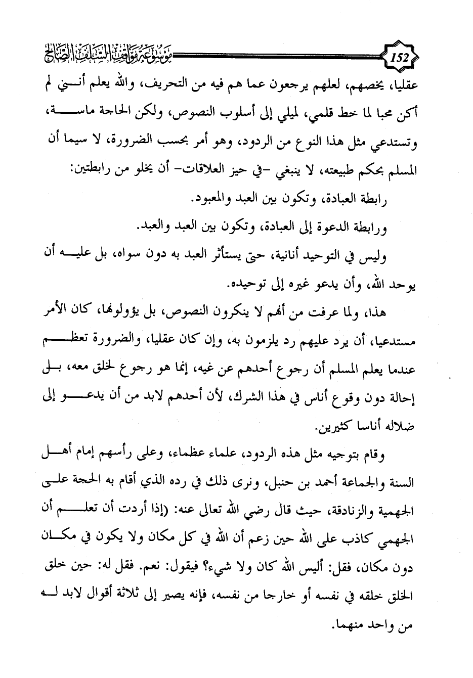 عقليا، يخصهم، لعلهم يرجعون عما هم فيه من التحريف، والله يعلم أنني لم أكن محبا لما خط قلمي، لميلي إلى أسلوب النصوص، ولكن الحاجة ماسة، وتستدعي مثل هذا النوع من الردود، وهو أمر بحسب الضرورة، لا سيما أن المسلم بحكم طبيعته، لا ينبغي -في حيز العلاقات- أن يخلو من رابطتين: