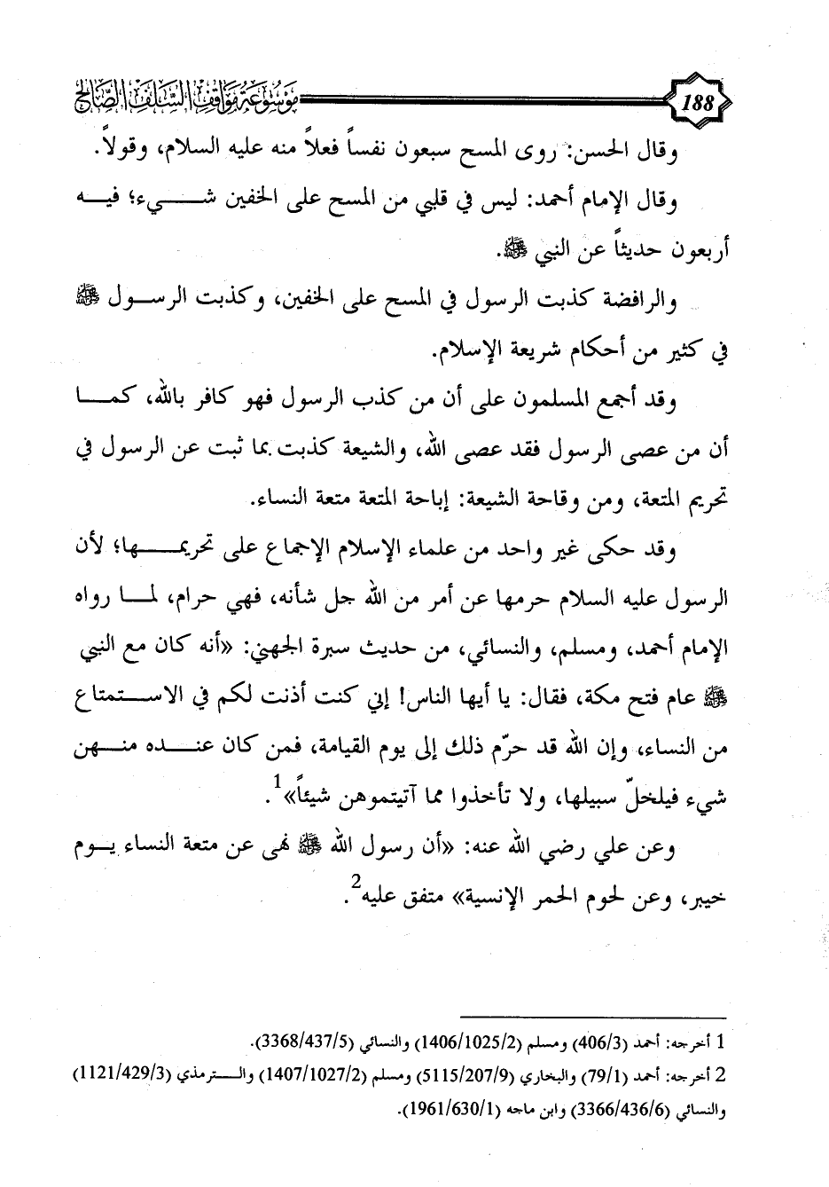 (¬2) أخرجه: أحمد (1/ 79) والبخاري (9/ 207/5115) ومسلم (2/ 1027/1407) والترمذي (3/ 429/1121) والنسائي (6/ 436/3366) وابن ماجه (1/ 630/1961).
