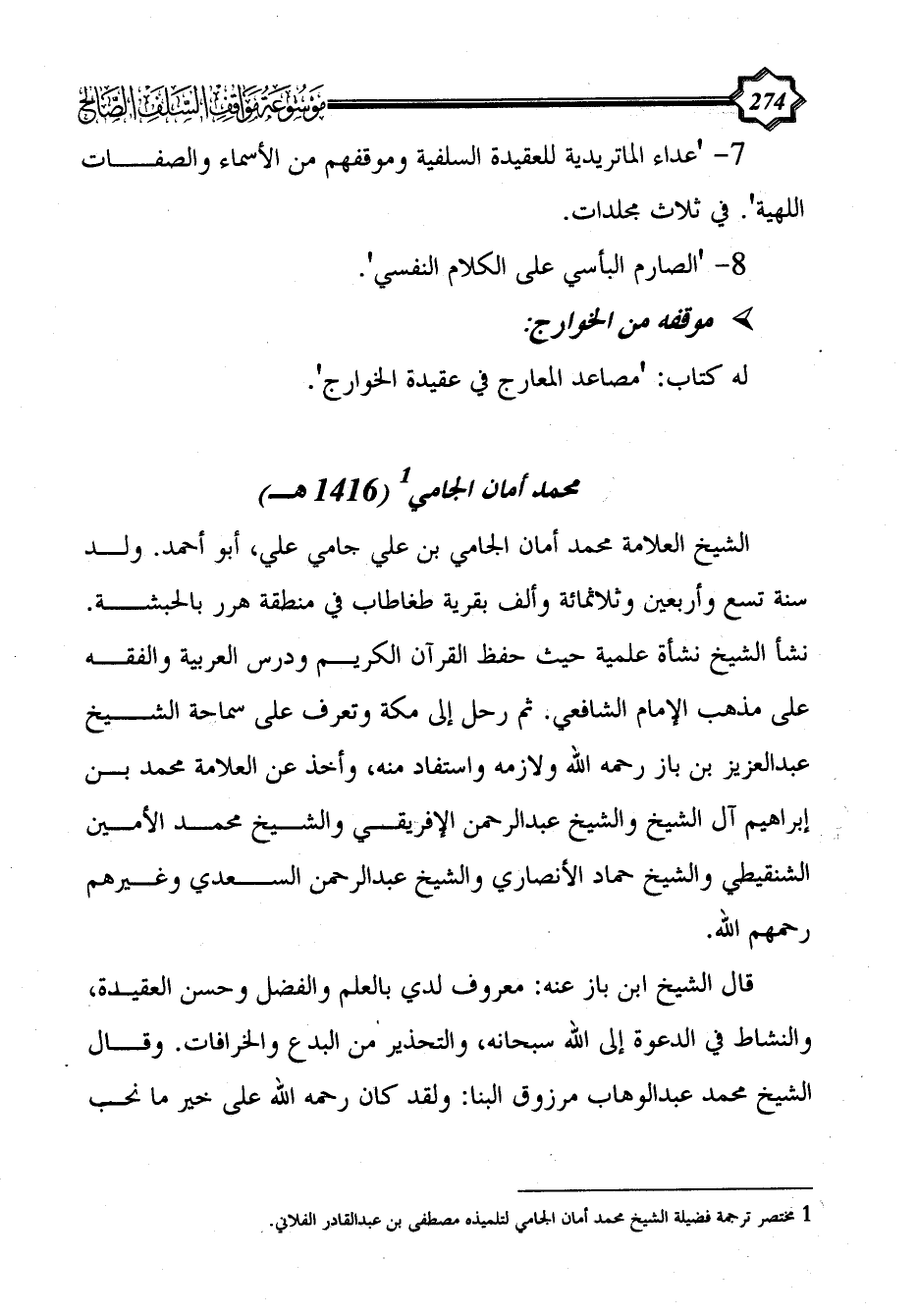 (¬1) مختصر ترجمة فضيلة الشيخ محمد أمان الجامي لتلميذه مصطفى بن عبد القادر الفلاني.