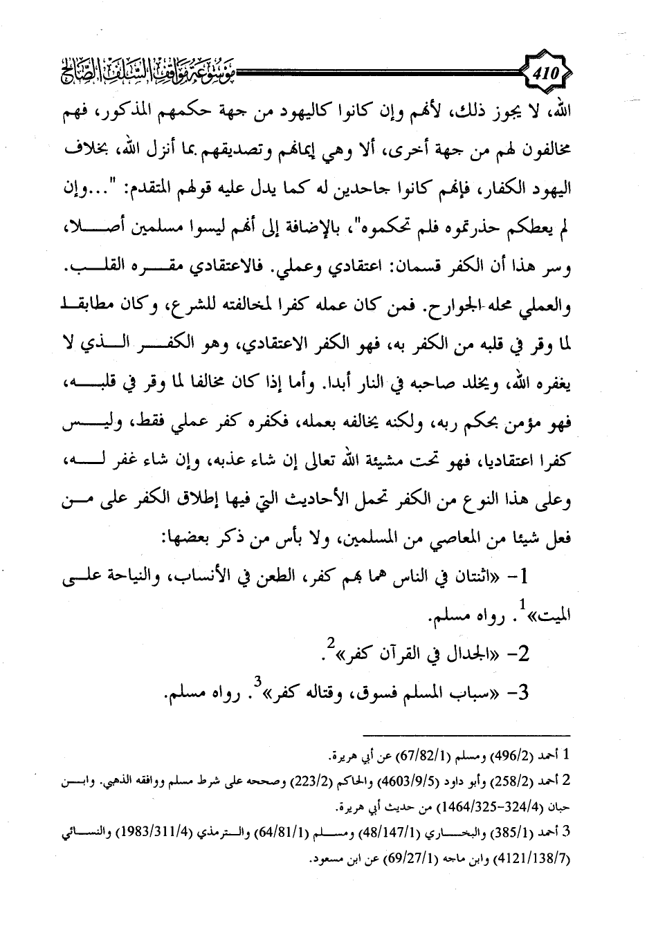 (¬3) أحمد (1/ 385) والبخاري (1/ 147/48) ومسلم (1/ 81/64) والترمذي (4/ 311/1983) والنسائي (7/ 138/4121) وابن ماجه (1/ 27/69) عن ابن مسعود.