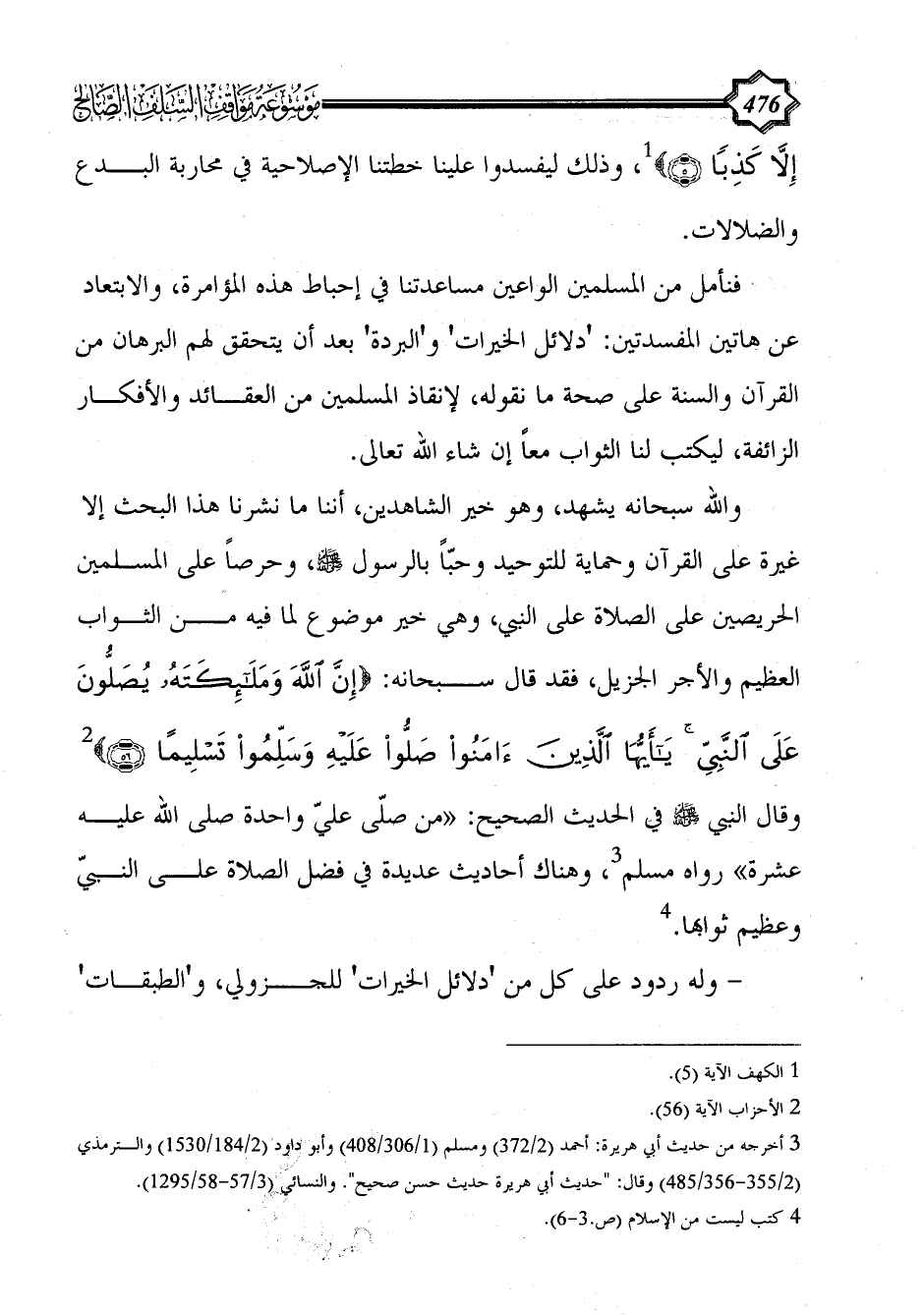 والله سبحانه يشهد، وهو خير الشاهدين، أننا ما نشرنا هذا البحث إلا غيرة على القرآن وحماية للتوحيد وحبّاً بالرسول - صلى الله عليه وسلم -، وحرصاً على المسلمين الحريصين على الصلاة على النبي، وهي خير موضوع لما فيه من الثواب العظيم والأجر الجزيل، فقد قال سبحانه: {إِنَّ اللَّهَ وَمَلَائِكَتَهُ يُصَلُّونَ عَلَى النَّبِيِّ يَا أَيُّهَا الَّذِينَ آَمَنُوا صَلُّوا عَلَيْهِ وَسَلِّمُوا تَسْلِيمًا (56)} (¬2) وقال النبي - صلى الله عليه وسلم - في الحديث الصحيح: «من صلّى عليّ واحدة صلى الله عليه عشرة» رواه مسلم (¬3)، وهناك أحاديث عديدة في فضل الصلاة على النبيّ وعظيم ثوابها. (¬4)