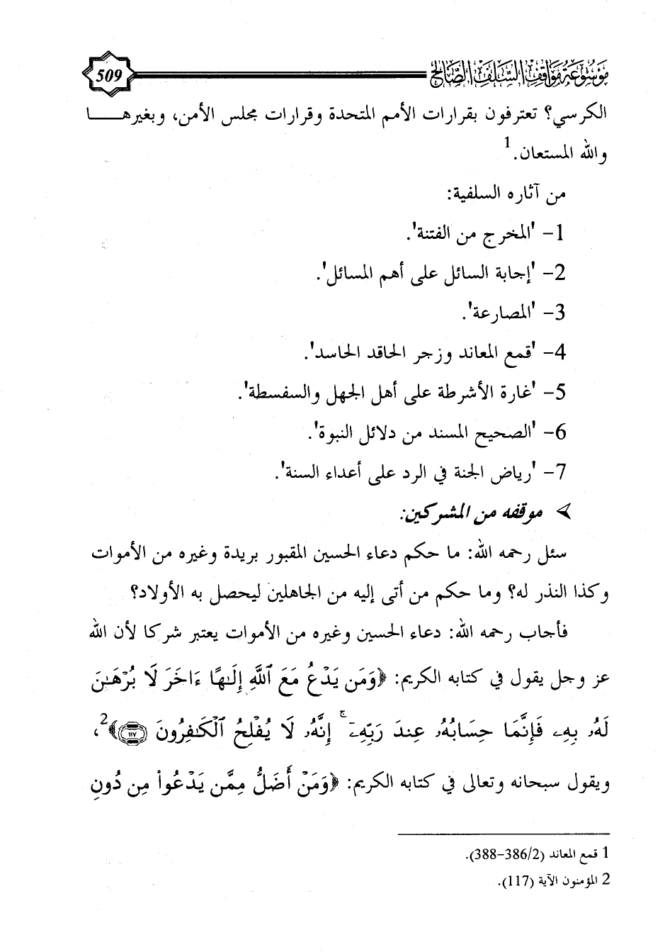 من آثاره السلفية: