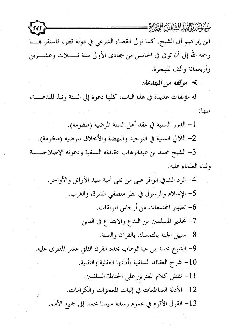 له مؤلفات عديدة في هذا الباب، كلها دعوة إلى السنة ونبذ للبدعة، منها: