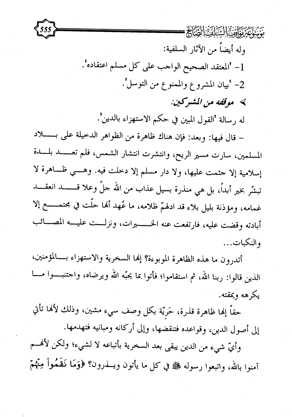 له رسالة 'القول المبين في حكم الاستهزاء بالدين'.