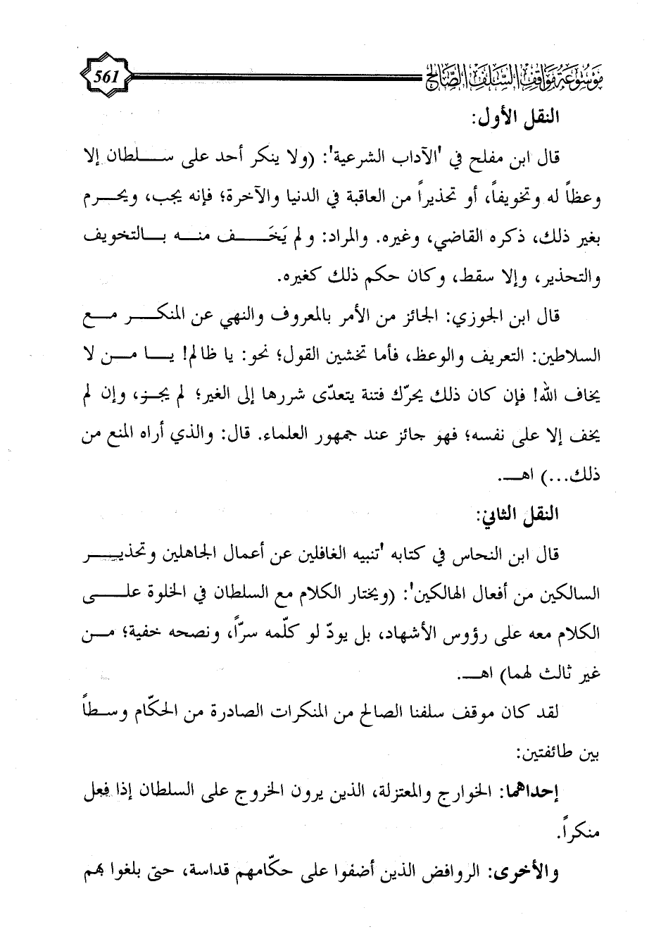 لقد كان موقف سلفنا الصالح من المنكرات الصادرة من الحكّام وسطاً بين طائفتين: