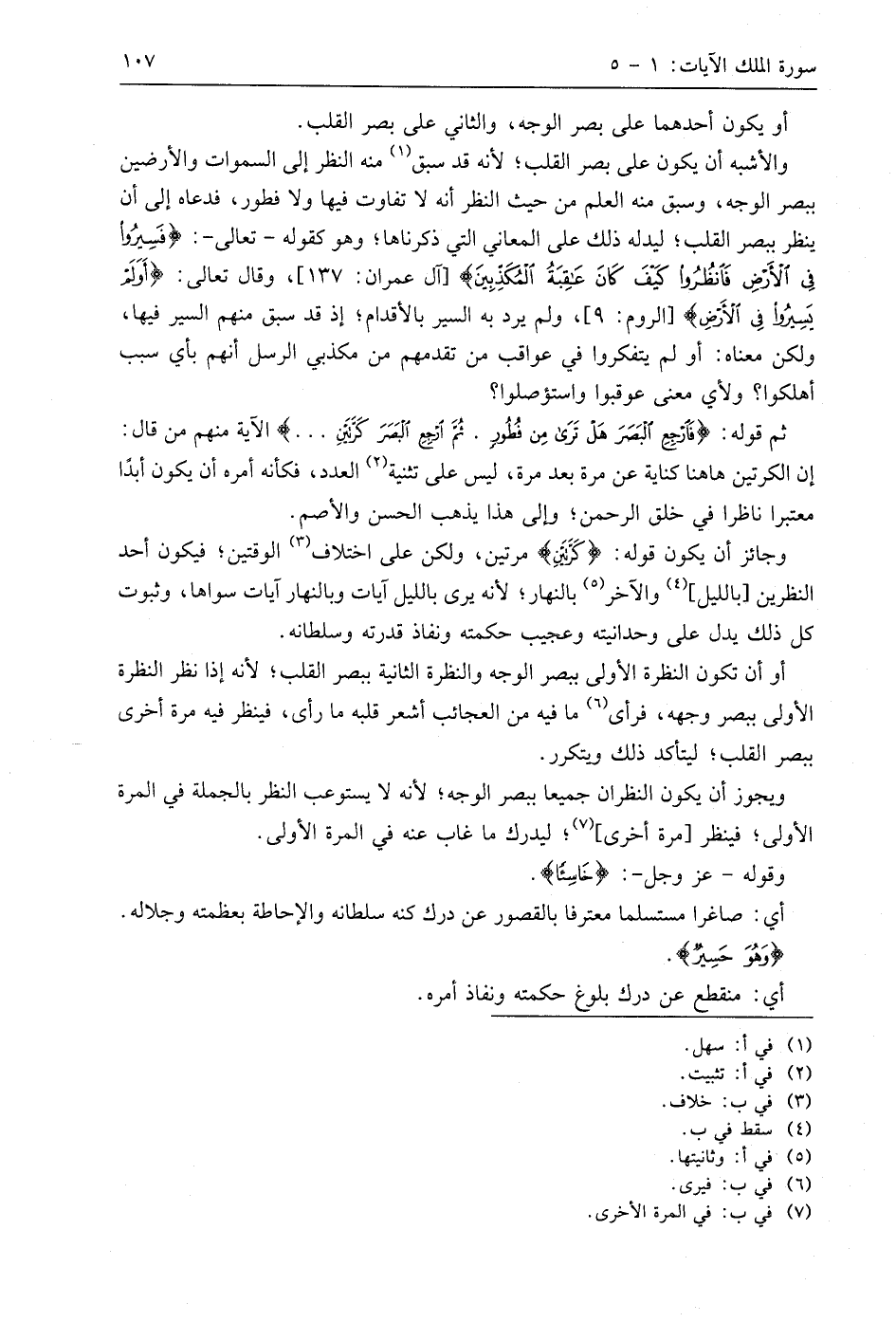 ثم قوله: (فَارْجِعِ الْبَصَرَ هَلْ تَرَى مِنْ فُطُورٍ (3) ثُمَّ ارْجِعِ الْبَصَرَ كَرَّتَيْنِ. . . (4). الآية منهم من قال: إن الكرتين هاهنا كناية عن مرة بعد مرة، ليس على تثنية العدد، فكأنه أمره أن يكون أبدًا معتبرا ناظرا في خلق الرحمن؛ وإلى هذا يذهب الحسن والأصم.