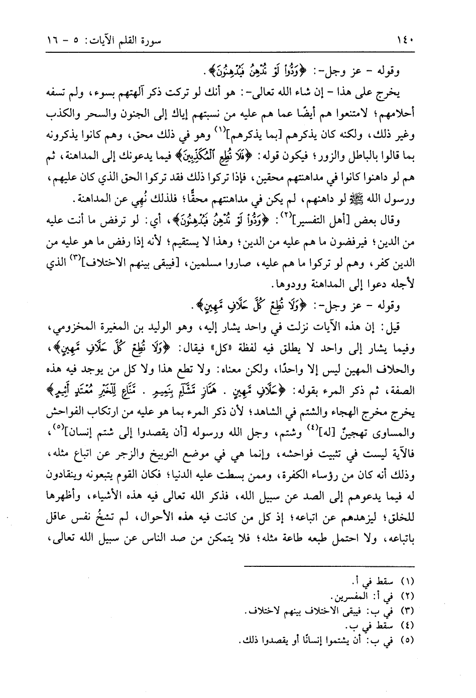 وقال بعض أهل التفسير: (وَدُّوا لَوْ تُدْهِنُ فَيُدْهِنُونَ)، أي: لو ترفض ما أنت عليه من الدِّين؛ فيرفضون ما هم عليه من الدِّين؛ وهذا لا يستقيم؛ لأنه إذا رفض ما هو عليه من الدِّين كفر، وهم لو تركوا ما هم عليه، صاروا مسلمين، فيبقى بينهم الاختلاف الذي لأجله دعوا إلى المداهنة وودوها.