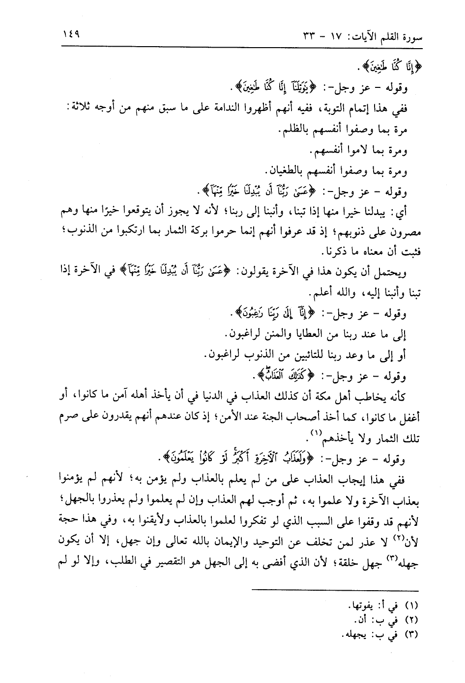 أي: يبدلنا خيرا منها إذا تبنا، وأنبنا إلى ربنا؛ لأنه لا يجوز أن يتوقعوا خيرًا منها وهم مصرون على ذنوبهم؛ إذ قد عرفوا أنهم إنما حرموا بركة الثمار بما ارتكبوا من الذنوب؛ فثبت أن معناه ما ذكرنا.