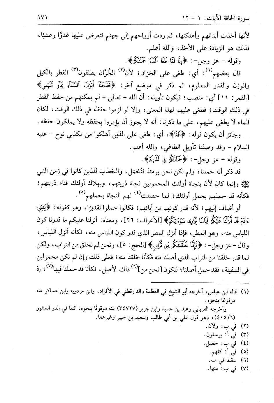 وقوله - عَزَّ وَجَلَّ -: (إِنَّا لَمَّا طَغَى الْمَاءُ حَمَلْنَاكُمْ فِي الْجَارِيَةِ (11).