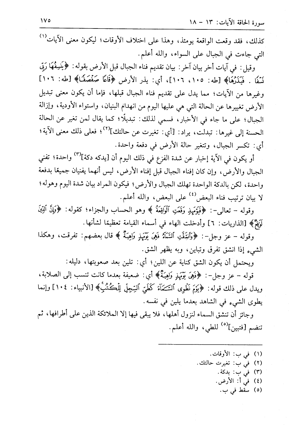 كذلك، فقد وقعت الواقعة يومئذ، وهذا على اختلاف الأوقات؛ ليكون معنى الآيات التي جاءت في الجبال على السواء، واللَّه أعلم.