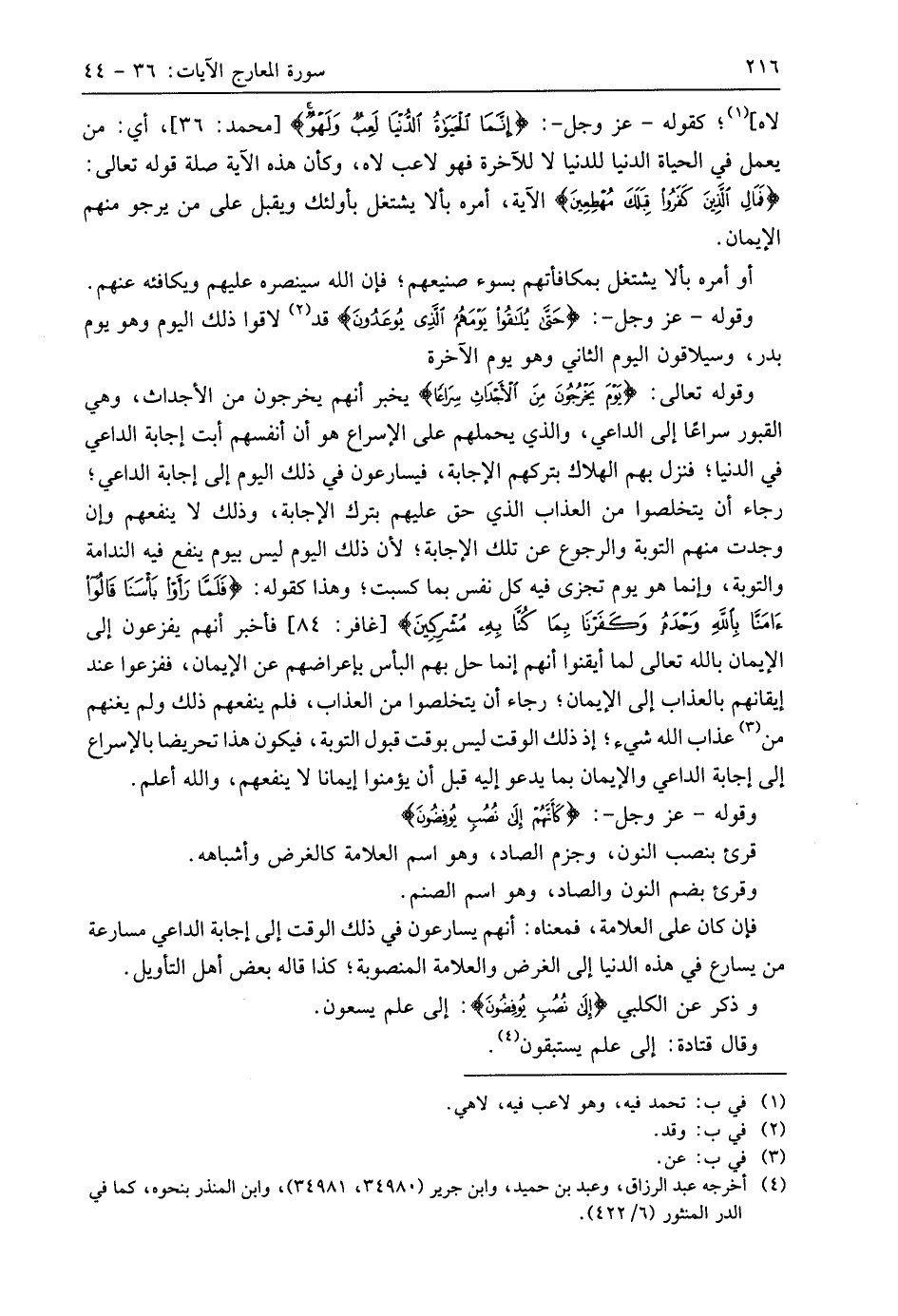 وقوله - عَزَّ وَجَلَّ -: (حَتَّى يُلَاقُوا يَوْمَهُمُ الَّذِي يُوعَدُونَ) قد لاقوا ذلك اليوم وهو يوم بدر، وسيلاقون اليوم الثاني وهو يوم الآخرة.