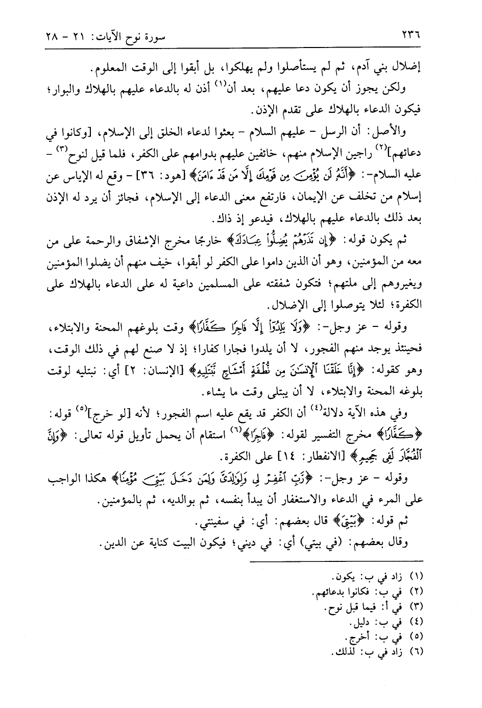 وقوله - عَزَّ وَجَلَّ -: (وَلَا يَلِدُوا إِلَّا فَاجِرًا كَفَّارًا) وقت بلوغهم المحنة والابتلاء، فحينئذ يوجد منهم الفجور، لا أن يلدوا فجارا كفارا؛ إذ لا صنع لهم في ذلك الوقت، وهو كقوله: (إِنَّا خَلَقْنَا الْإِنْسَانَ مِنْ نُطْفَةٍ أَمْشَاجٍ نَبْتَلِيهِ)، أي: نبتليه لوقت بلوغه المحنة والابتلاء، لا أن يبتلى وقت ما يشاء.