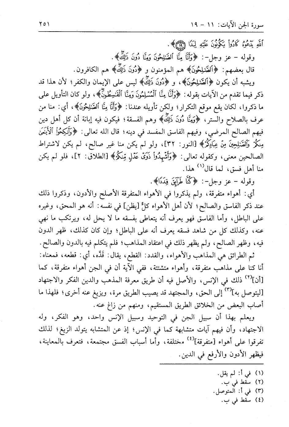 وقوله - عَزَّ وَجَلَّ -: (وَأَنَّا مِنَّا الصَّالِحُونَ وَمِنَّا دُونَ ذَلِكَ ... (11).