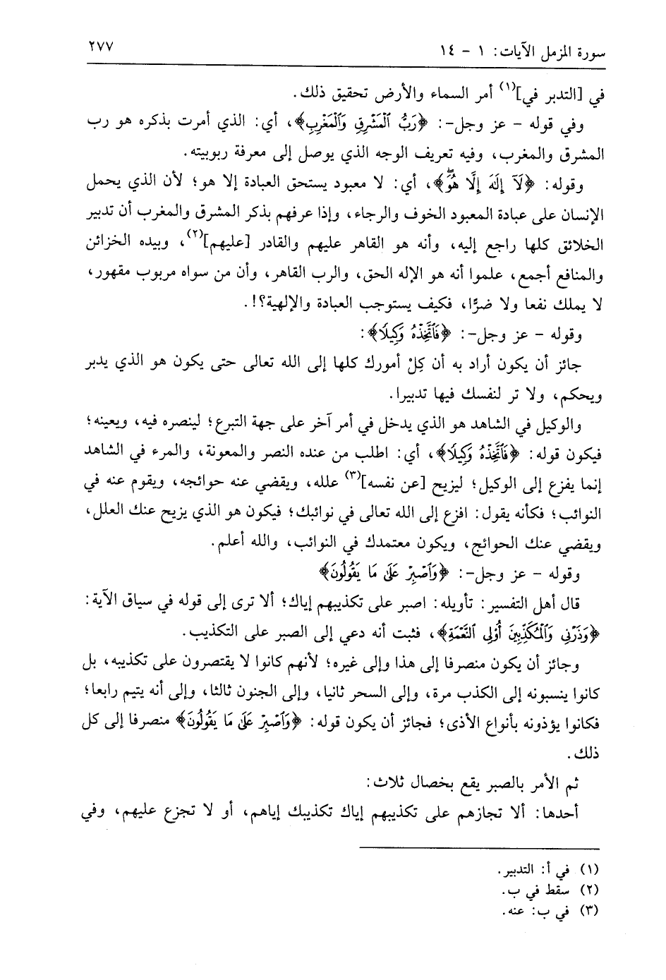 وفي قوله - عَزَّ وَجَلَّ -: (رَبُّ الْمَشْرِقِ وَالْمَغْرِبِ)، أي: الذي أمرت بذكره هو رب المشرق والمغرب، وفيه تعريف الوجه الذي يوصل إلى معرفة ربوبيته.