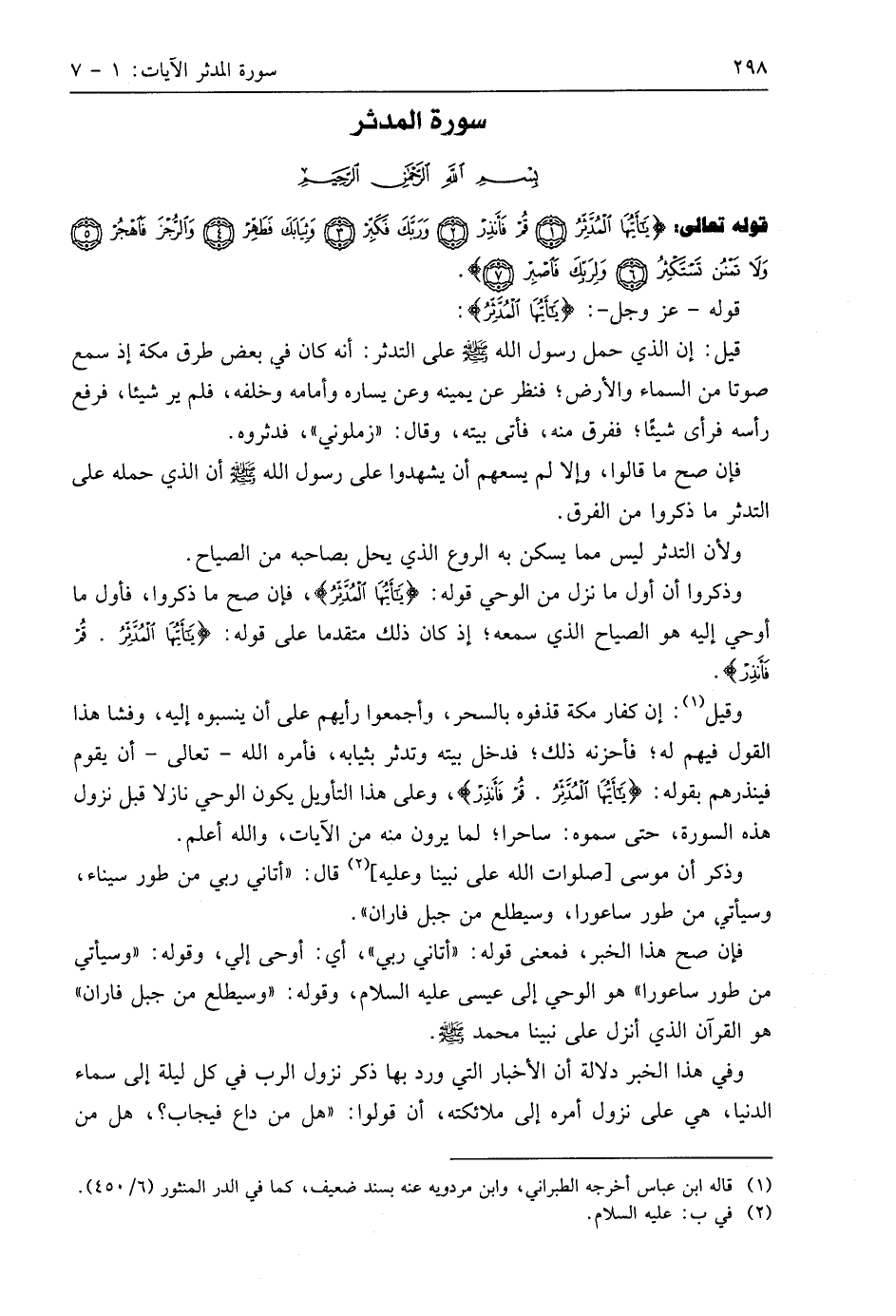 قوله تعالى: (يَا أَيُّهَا الْمُدَّثِّرُ (1) قُمْ فَأَنْذِرْ (2) وَرَبَّكَ فَكَبِّرْ (3) وَثِيَابَكَ فَطَهِّرْ (4) وَالرُّجْزَ فَاهْجُرْ (5) وَلَا تَمْنُنْ تَسْتَكْثِرُ (6) وَلِرَبِّكَ فَاصْبِرْ (7).