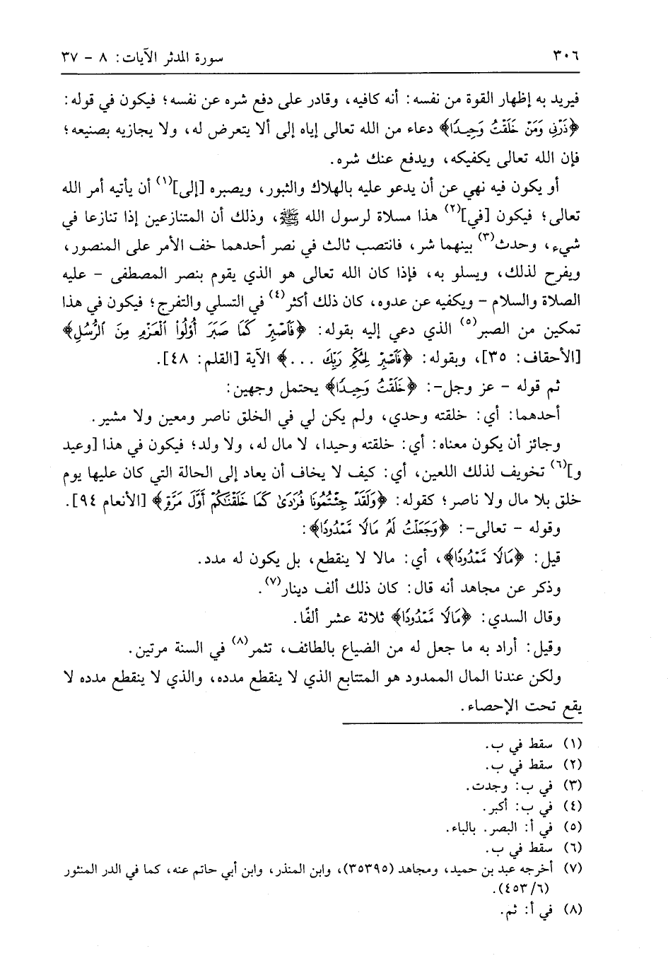 وقوله - تعالى -: (وَجَعَلْتُ لَهُ مَالًا مَمْدُودًا (12):
