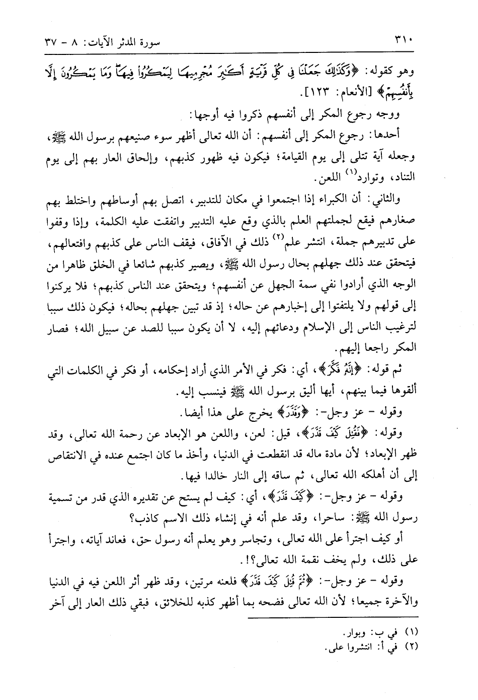 ثم قوله: (إِنَّهُ فَكَّرَ)، أي: فكر في الأمر الذي أراد إحكامه، أو فكر في الكلمات التي ألقوها فيما بينهم، أيها أليق برسول اللَّه - صَلَّى اللَّهُ عَلَيهِ وَسَلَّمَ - فينسب إليه.