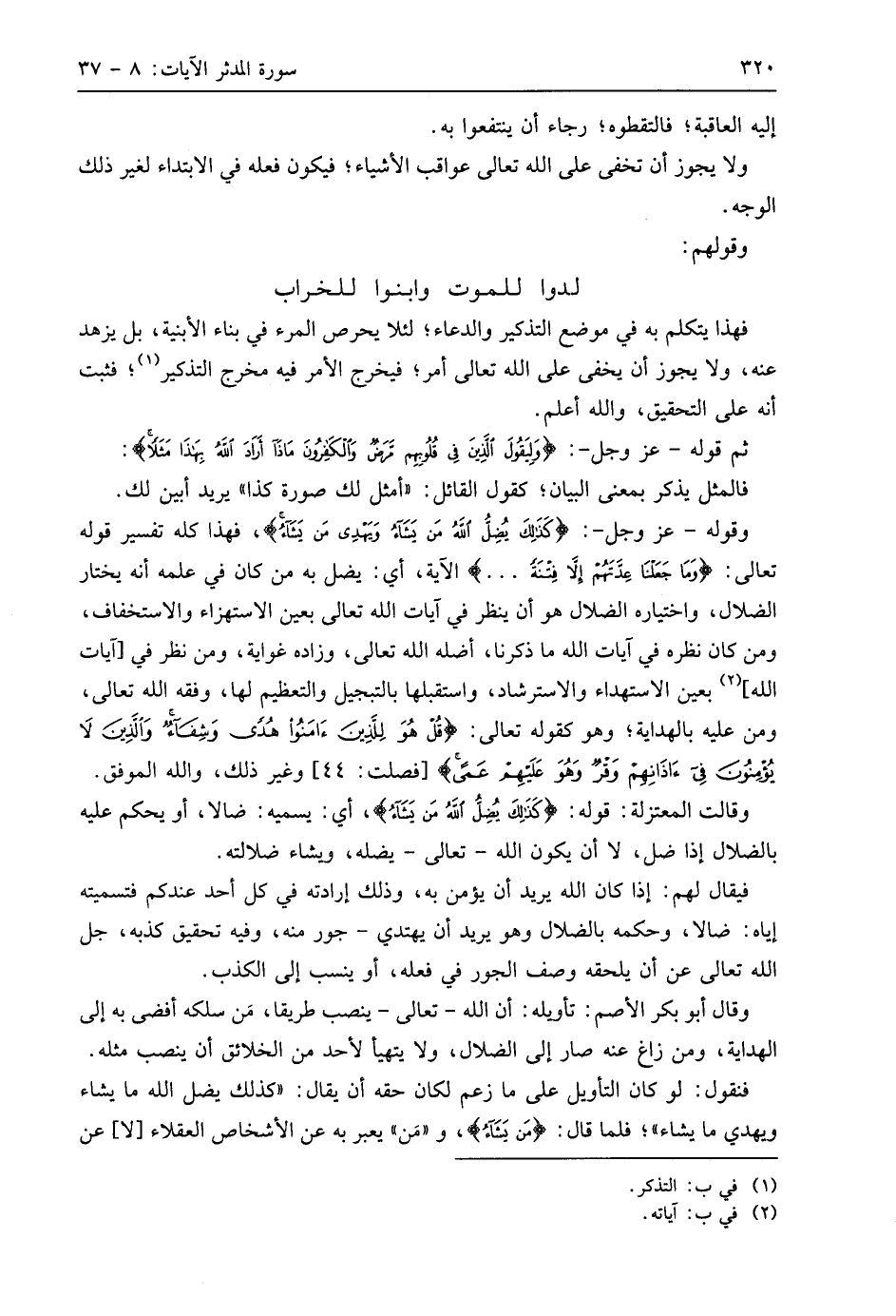 فنقول: لو كان التأويل على ما زعم لكان حقه أن يقال: " كذلك يضل اللَّه ما يشاء ويهدي ما يشاء "؛ فلما قال: (مَنْ يَشَاءُ)، و " مَن " يعبر به عن الأشخاص العقلاء لا عن
