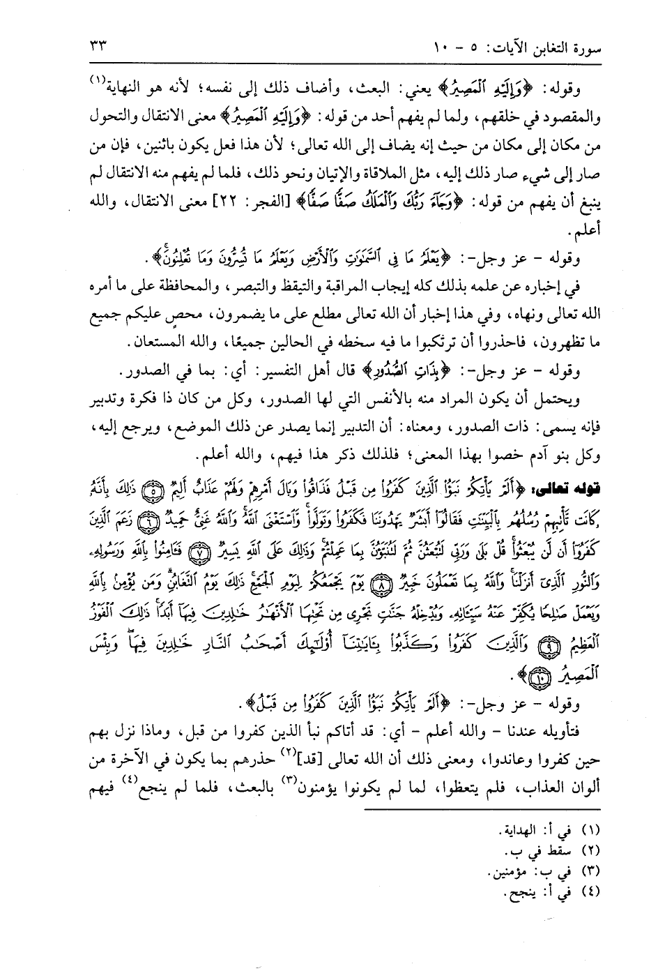 قوله تعالى: (أَلَمْ يَأْتِكُمْ نَبَأُ الَّذِينَ كَفَرُوا مِنْ قَبْلُ فَذَاقُوا وَبَالَ أَمْرِهِمْ وَلَهُمْ عَذَابٌ أَلِيمٌ (5) ذَلِكَ بِأَنَّهُ كَانَتْ تَأْتِيهِمْ رُسُلُهُمْ بِالْبَيِّنَاتِ فَقَالُوا أَبَشَرٌ يَهْدُونَنَا فَكَفَرُوا وَتَوَلَّوْا وَاسْتَغْنَى اللَّهُ وَاللَّهُ غَنِيٌّ حَمِيدٌ (6) زَعَمَ الَّذِينَ كَفَرُوا أَنْ لَنْ يُبْعَثُوا قُلْ بَلَى وَرَبِّي لَتُبْعَثُنَّ ثُمَّ لَتُنَبَّؤُنَّ بِمَا عَمِلْتُمْ وَذَلِكَ عَلَى اللَّهِ يَسِيرٌ (7) فَآمِنُوا بِاللَّهِ وَرَسُولِهِ وَالنُّورِ الَّذِي أَنْزَلْنَا وَاللَّهُ بِمَا تَعْمَلُونَ خَبِيرٌ (8) يَوْمَ يَجْمَعُكُمْ لِيَوْمِ الْجَمْعِ ذَلِكَ يَوْمُ التَّغَابُنِ وَمَنْ يُؤْمِنْ بِاللَّهِ وَيَعْمَلْ صَالِحًا يُكَفِّرْ عَنْهُ سَيِّئَاتِهِ وَيُدْخِلْهُ جَنَّاتٍ تَجْرِي مِنْ تَحْتِهَا الْأَنْهَارُ خَالِدِينَ فِيهَا أَبَدًا ذَلِكَ الْفَوْزُ الْعَظِيمُ (9) وَالَّذِينَ كَفَرُوا وَكَذَّبُوا بِآيَاتِنَا أُولَئِكَ أَصْحَابُ النَّارِ خَالِدِينَ فِيهَا وَبِئْسَ الْمَصِيرُ (10)