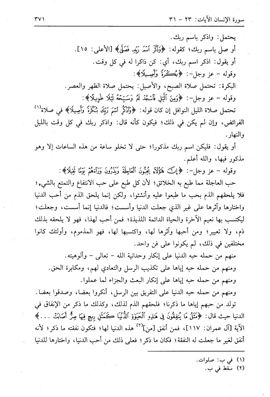 وقوله - عَزَّ وَجَلَّ -: (بُكْرَةً وَأَصِيلًا):