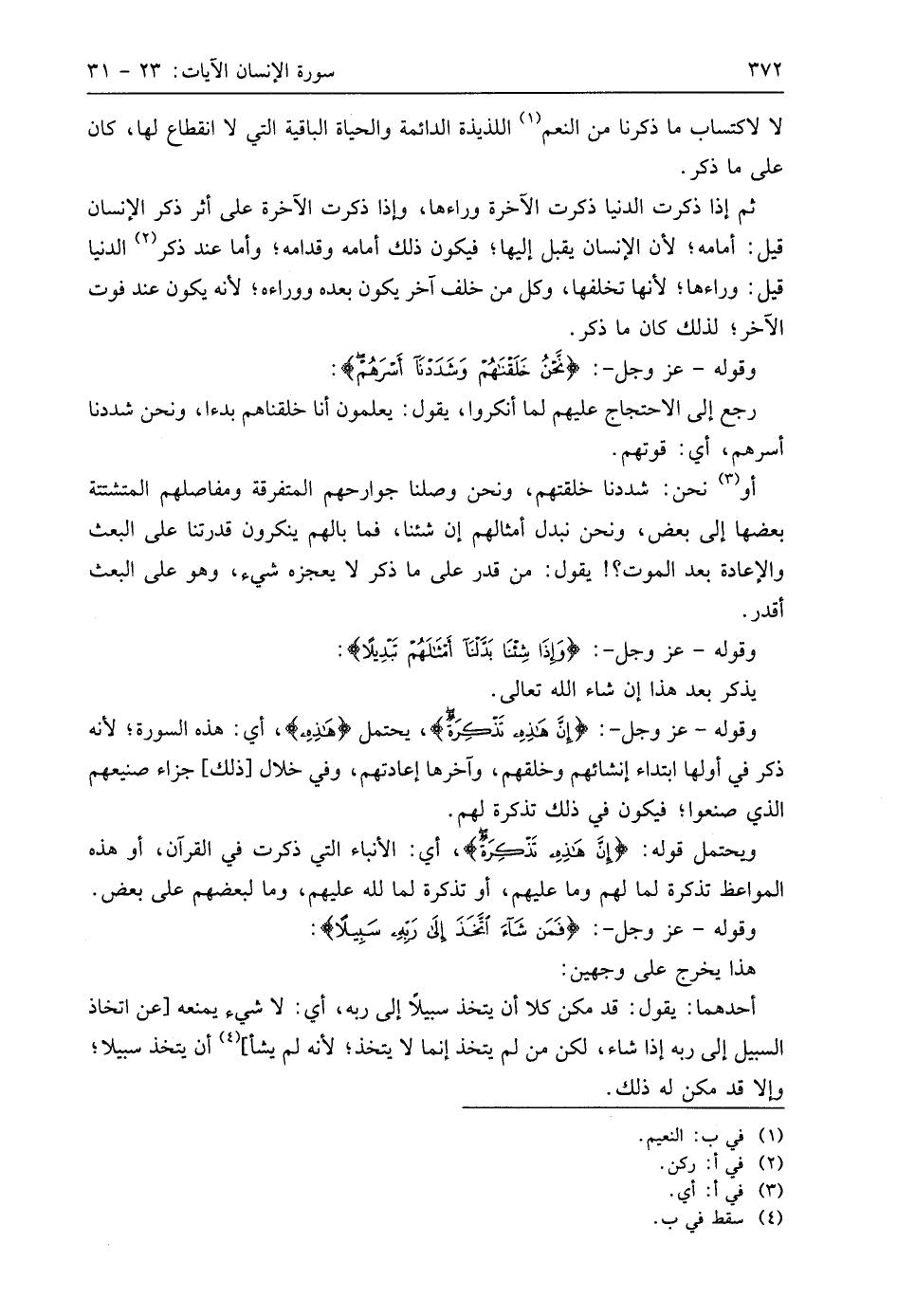 أحدهما: يقول: قد مكن كلا أن يتخذ سبيلاً إلى ربه، أي: لا شيء يمنعه عن اتخاذ السبيل إلى ربه إذا شاء، لكن من لم يتخذ إنما لا يتخذ؛ لأنه لم يشأ أن يتخذ سبيلا؛ وإلا قد مكن له ذلك.
