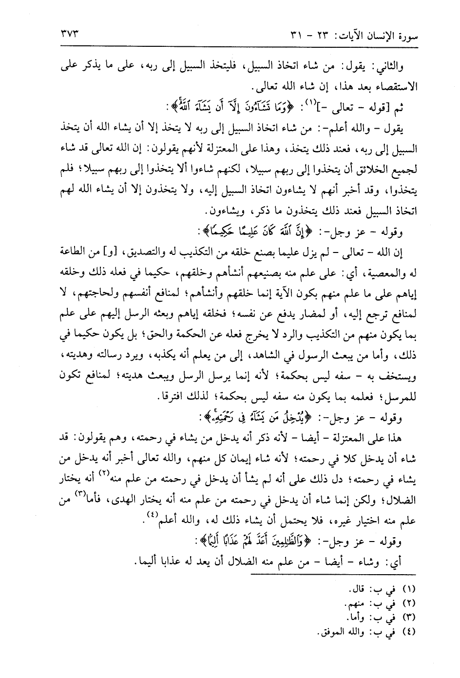 ثم قوله - تعالى -: (وَمَا تَشَاءُونَ إِلَّا أَنْ يَشَاءَ اللَّهُ ... (30):