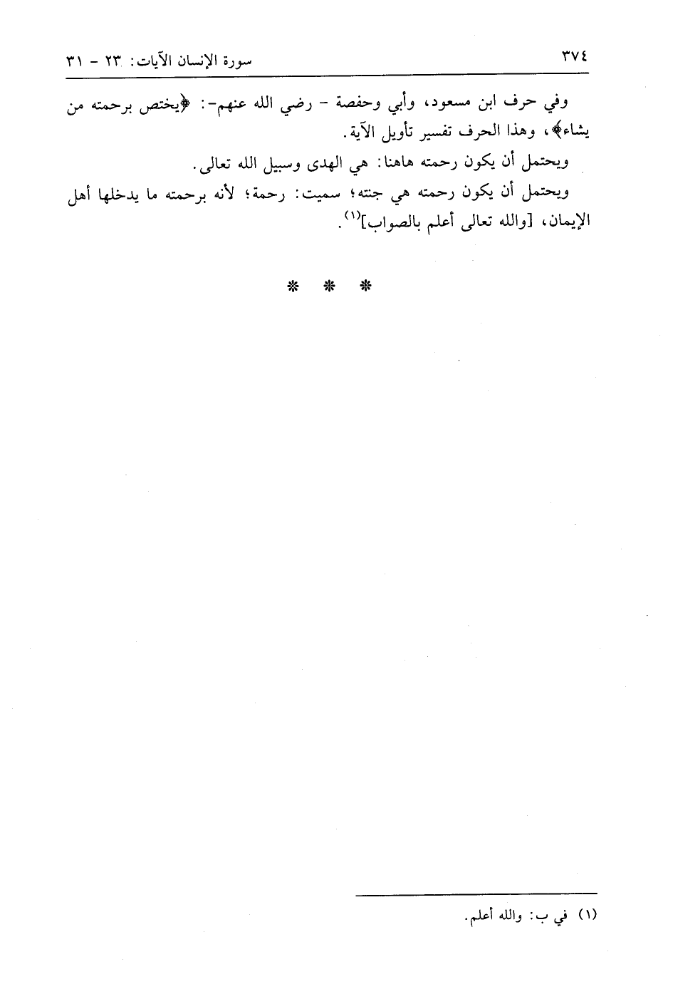 وفي حرف ابن مسعود، وأبي وحفصة - رضي اللَّه عنهم -: (يختص برحمته من يشاء)، وهذا الحرف تفسير تأويل الآية.