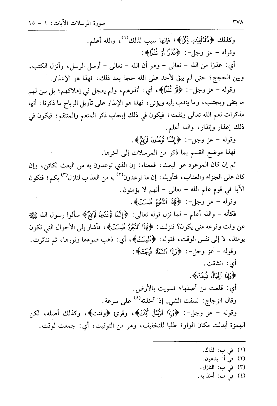 وقوله - عَزَّ وَجَلَّ -: (عُذْرًا أَوْ نُذْرًا (6):
