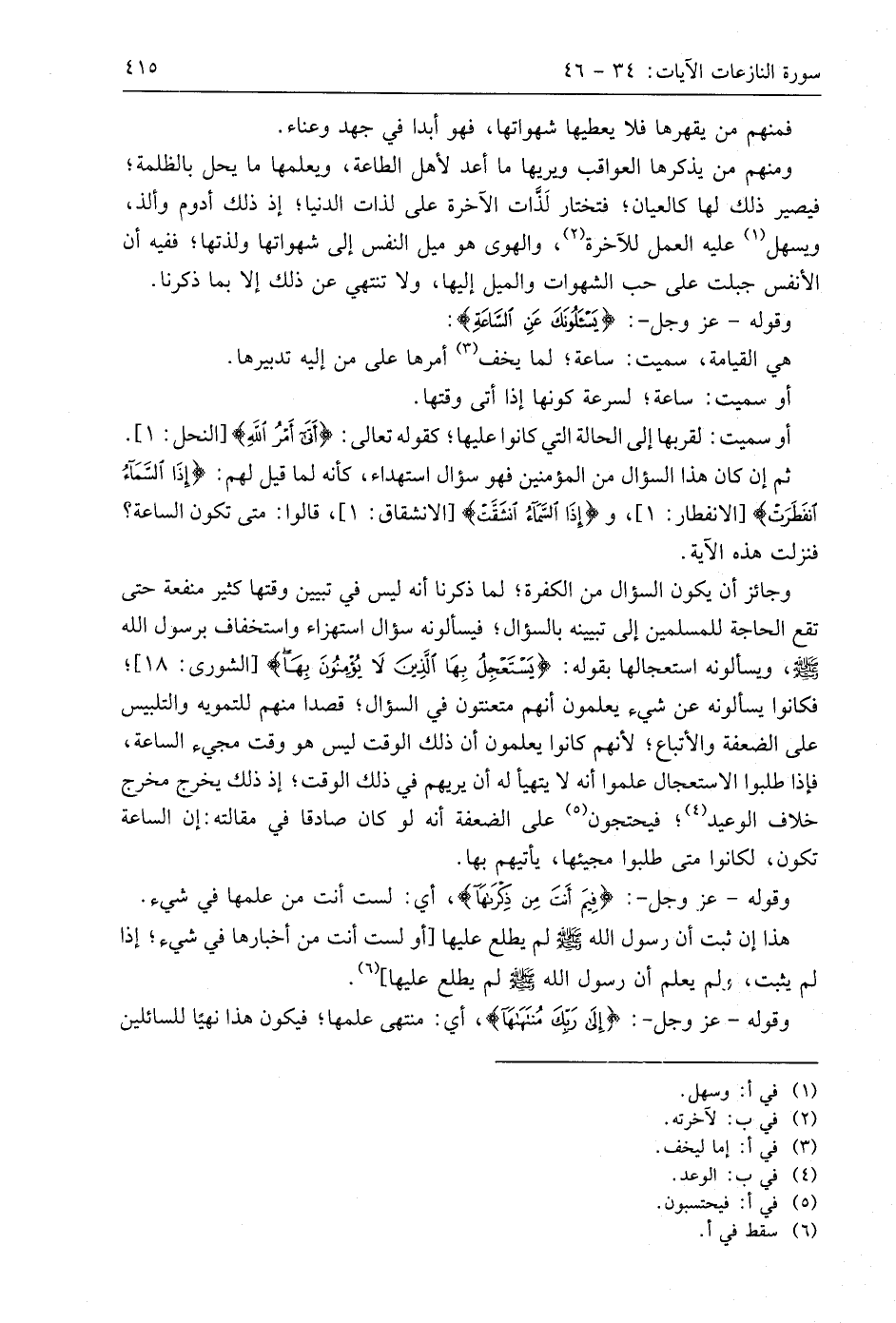 وقوله - عَزَّ وَجَلَّ -: (يَسْأَلُونَكَ عَنِ السَّاعَةِ أَيَّانَ مُرْسَاهَا (42):