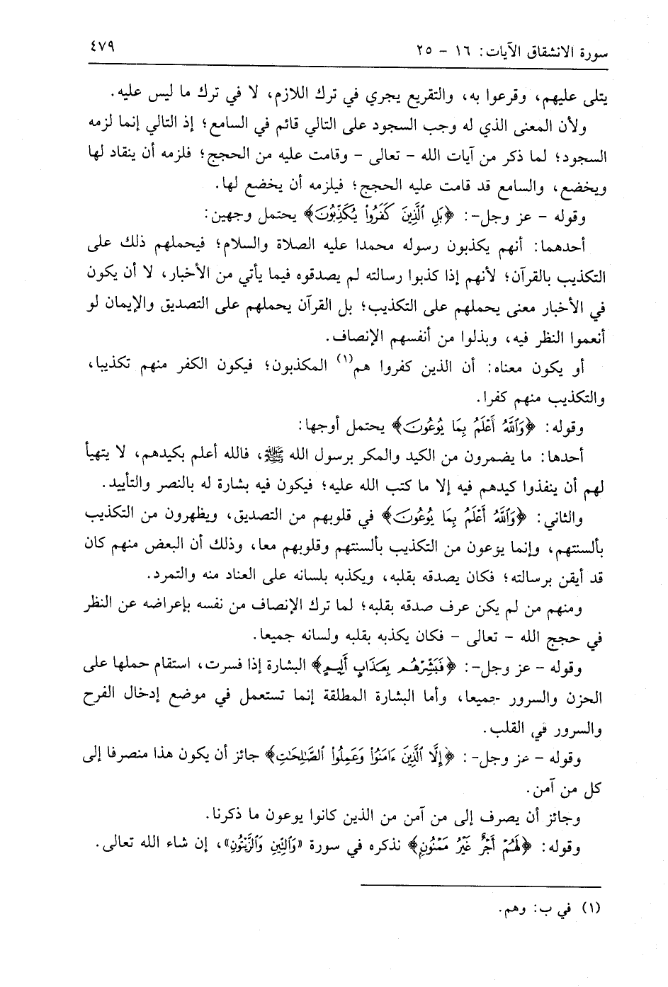 وقوله - عَزَّ وَجَلَّ -: (بَلِ الَّذِينَ كَفَرُوا يُكَذِّبُونَ (22) يحتمل وجهين: