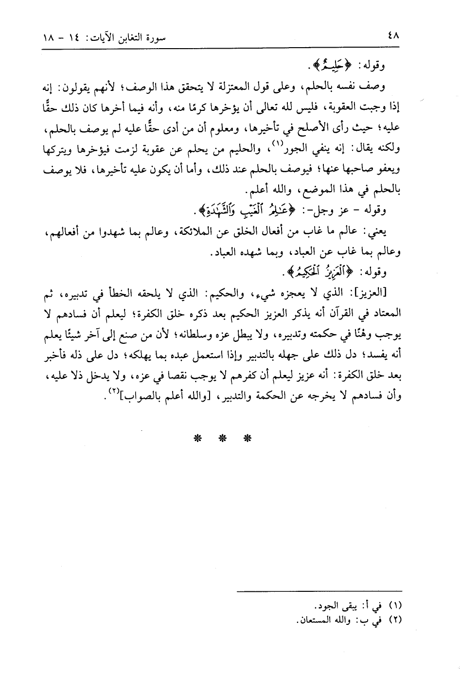وقوله - عَزَّ وَجَلَّ -: (عَالِمُ الْغَيْبِ وَالشَّهَادَةِ ... (18).