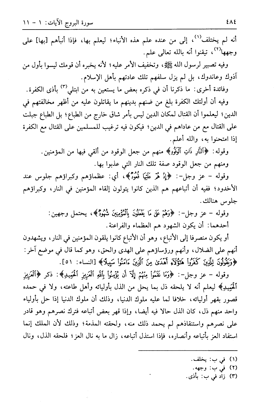 وقوله - عَزَّ وَجَلَّ -: (إِذْ هُمْ عَلَيْهَا قُعُودٌ (6) أي: عظماؤهم وكبراؤهم جلوس عند الأخدود؛ ففيه أن أتباعهم هم الذين كانوا يتولون إلقاء المؤمنين في النار، وكبراؤهم جلوس هنالك.