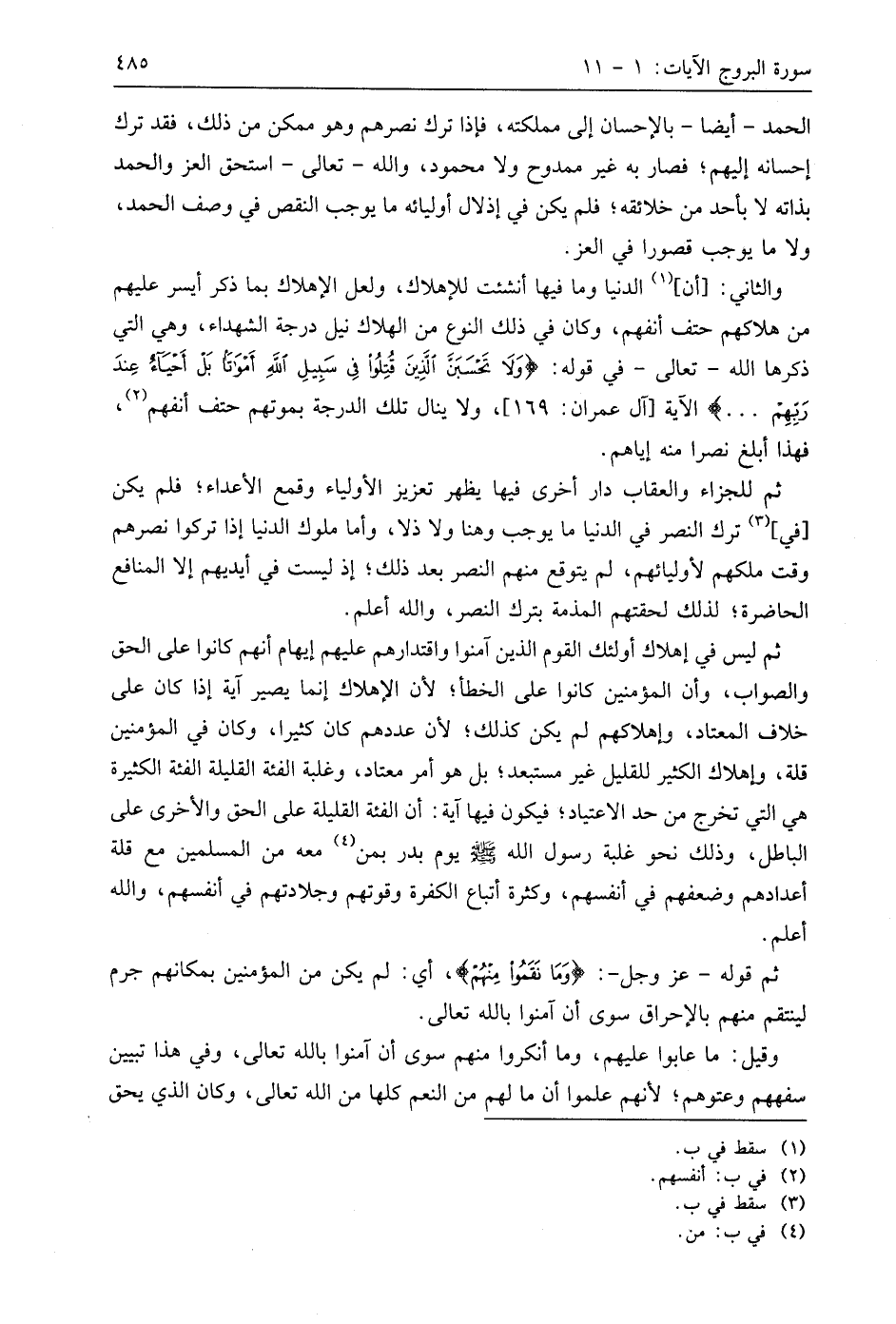 ثم قوله - عَزَّ وَجَلَّ -: (وَمَا نَقَمُوا مِنْهُمْ)، أي: لم يكن من المؤمنين بمكانهم جرم لينتقم منهم بالإحراق سوى أن آمنوا باللَّه تعالى.
