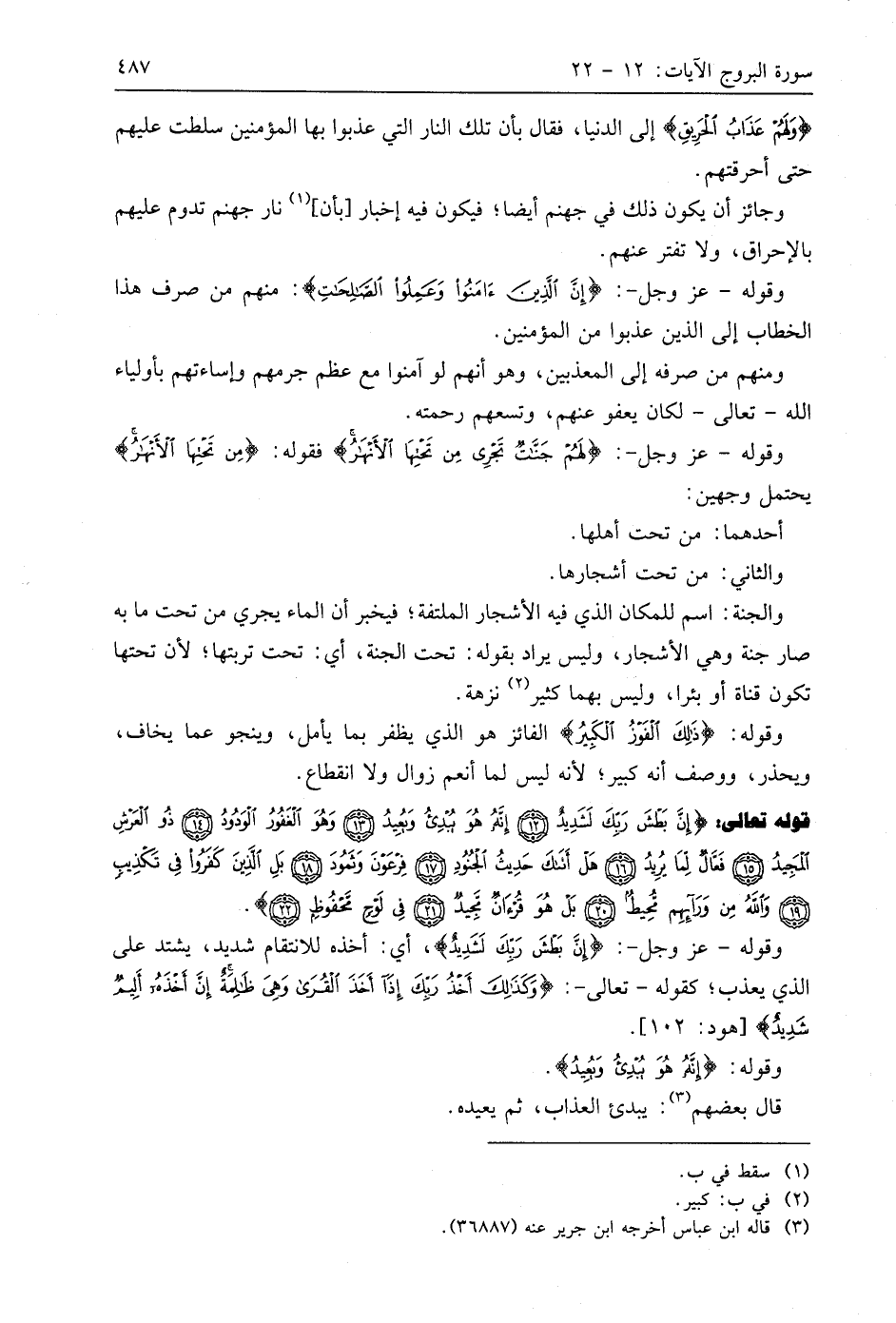 وقوله - عَزَّ وَجَلَّ -: (إِنَّ الَّذِينَ آمَنُوا وَعَمِلُوا الصَّالِحَاتِ لَهُمْ جَنَّاتٌ تَجْرِي مِنْ تَحْتِهَا الْأَنْهَارُ ذَلِكَ الْفَوْزُ الْكَبِيرُ (11) منهم من صرف هذا الخطاب إلى الذين عذبوا من المؤمنين.