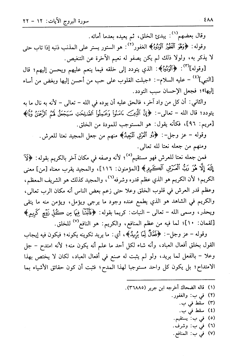 فمن جعله نعتا للعرش فهو مستقيم؛ لأنه وصفه في مكان آخر بالكريم بقوله: (لَا إِلَهَ إِلَّا هُوَ رَبُّ الْعَرْشِ الْكَرِيمِ)، والمجيد يقرب معناه من معنى الكريم؛ لأن الكريم هو الذي عظم قدره وشرفه، والمجيد كذلك هو الشريف المعظم، وعظم قدر العرش في قلوب الخلق وعلا حتى زعم بعض الناس أنه مكان الرب تعالى، والكريم في الشاهد هو الذي يطمع عنده وجود ما يرجى ويؤمل، ويؤمن منه ما يتقى ويحذر، وسمى اللَّه - تعالى - النبات: كريما بقوله: (فَأَنْبَتْنَا فِيهَا مِنْ كُلِّ زَوْجٍ كَرِيمٍ)؛ لما فيه من عظم المنافع، والكريم: هو النافع للخلق.